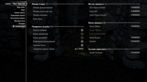 В наличии обширное МСМ-меню с массой настроек, в которое вам придётся зайти, поскольку для включения мода его надо инициализировать в настройках. Сам он не заработает.