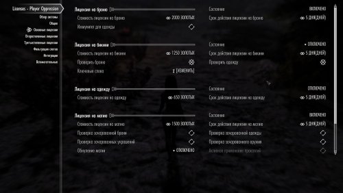 Скайрим - суровое место, раздираемое войной. Война требует средств и Ярлам приходится вводить новые налоги. Одними из таких являются новые сборы для женщин, вынуждающие их покупать лицензии для базовых вещей. Таких как крафт, торговля, ношение оружия, ношение доспехов, путешествия за город и даже проституция. Лицензии выдаются на время, приобретаются у управителя или стражника, а за их соблюдением следит стража.