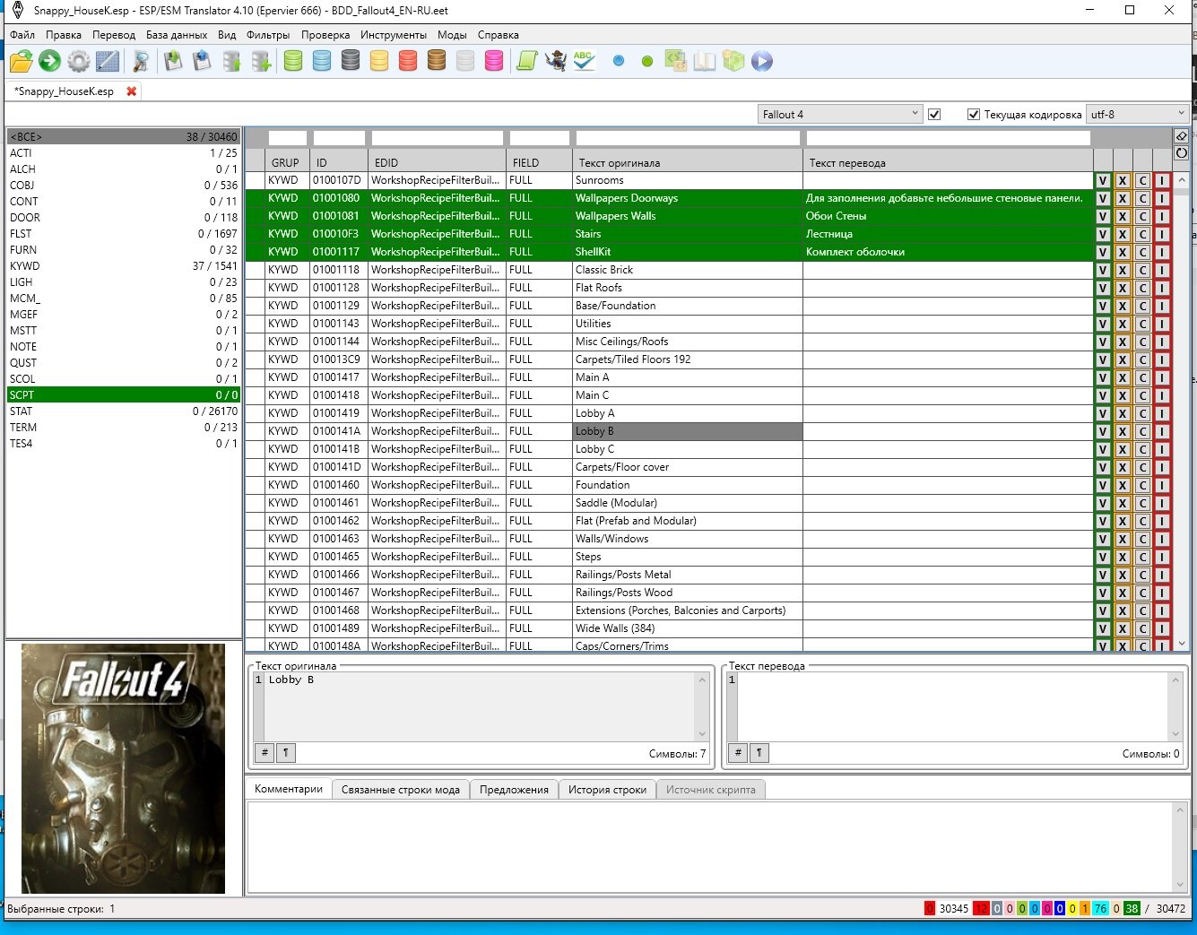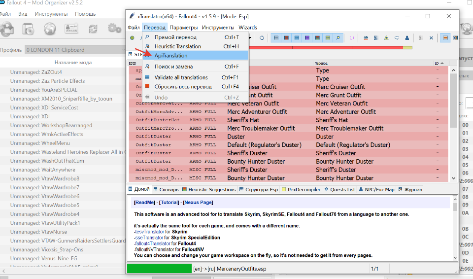 Если мод небольшой и мало текста, то проблем нет. Но по идее должен работать автоперевод вообще всех строк разом. Запустить его так и не смог. F9 и прочие F+... запускают переводчик гугл , который переводит лишь последнюю строчку из выделенных, причем "думает " секунд десять. Я "вручную " за это же время минимум три строки могу перевести.