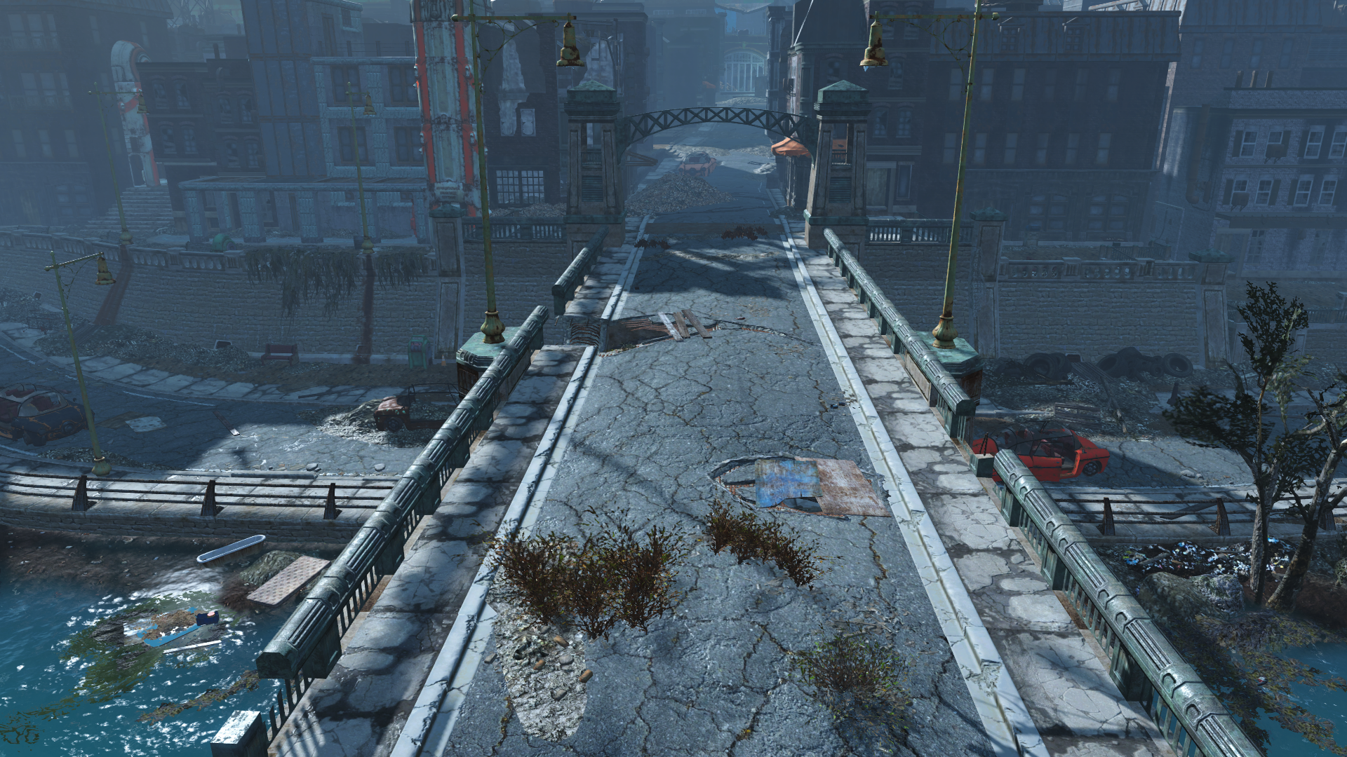 Тот, что на подходе к Даймонд Сити, он ванильный. Ну, или возможно, как-то изменен модом на Аллею Висельника, от нашего Василия