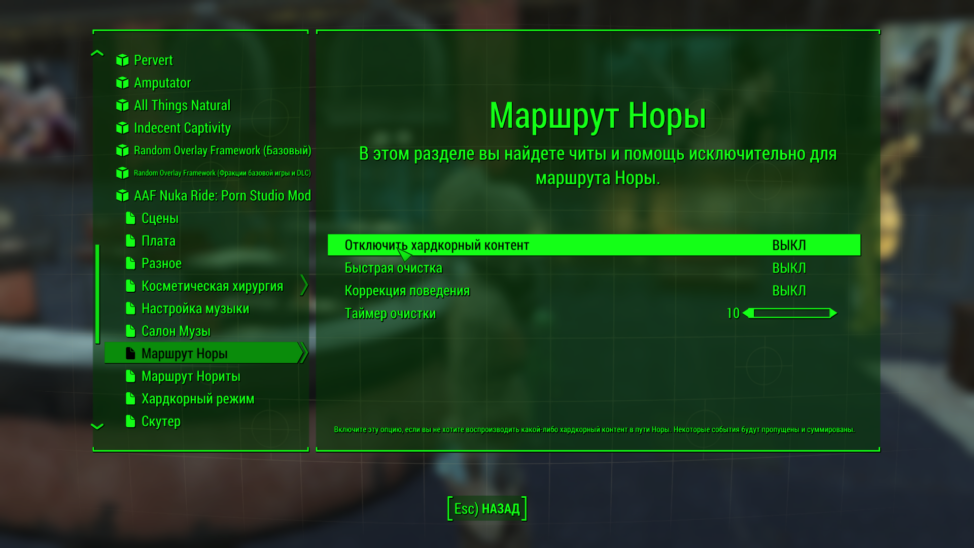 Эта сборка предназначена только для прохождения альтернативных сюжетов модов Nuka Ride. Это глобальные аддон который меняет сюжет игры и не может быть включен в обычные сборки.
