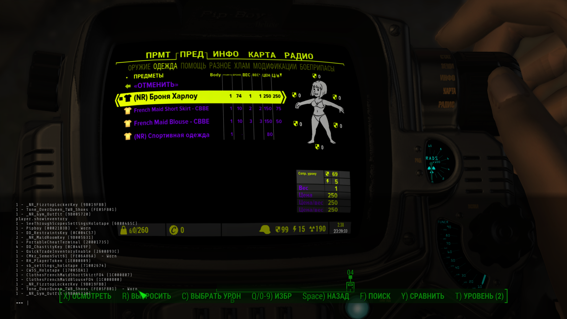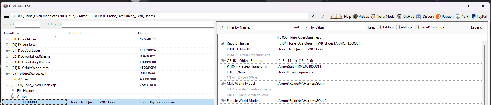 Добрый вечер. А можно как то пофиксить (NR) Броня Харлоу? Одевается только туфли из мода Tone_OverQueen.esp. Или подскажите куда копать, где зашито?