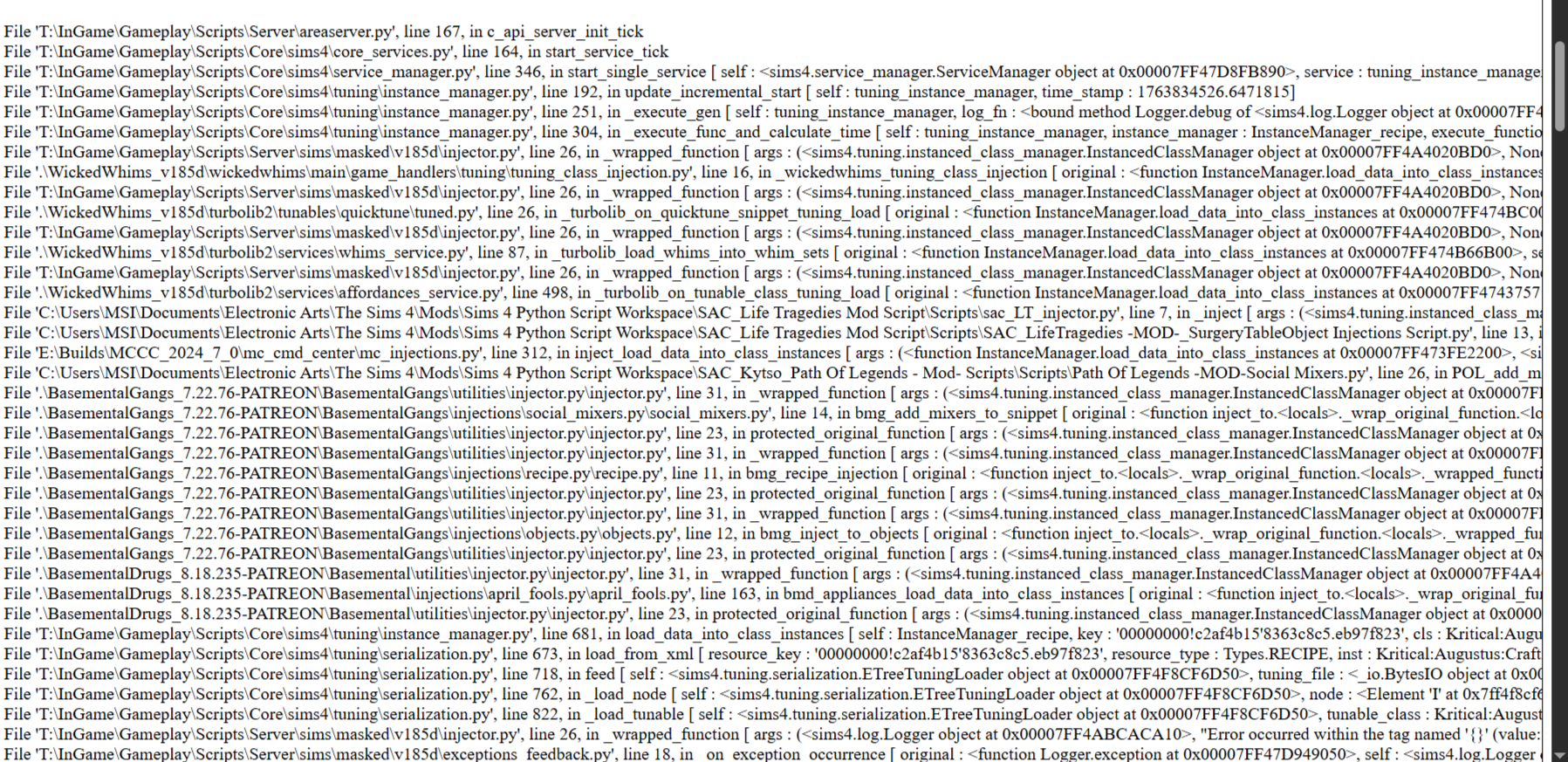3. Приложить lastException.txt (в дальнейшем LE), если таковой имеется, а также WickedWhims.log, BE-ExceptionReport.html, (находятся в корне папки Electronic Arts\The Sims 4), BE-PatchScannerReport.html, (последний находится в папке The Sims 4\Mods\TMEX-Settings), mc_lastexception.html, (находится в одной папке с модом МССС ) и др логи. Логи паковать в архиве rar, zip, 7z, (размещать в посту сам текст LE, в виду некоторых проблем, не надо) и прикладывать к посту.