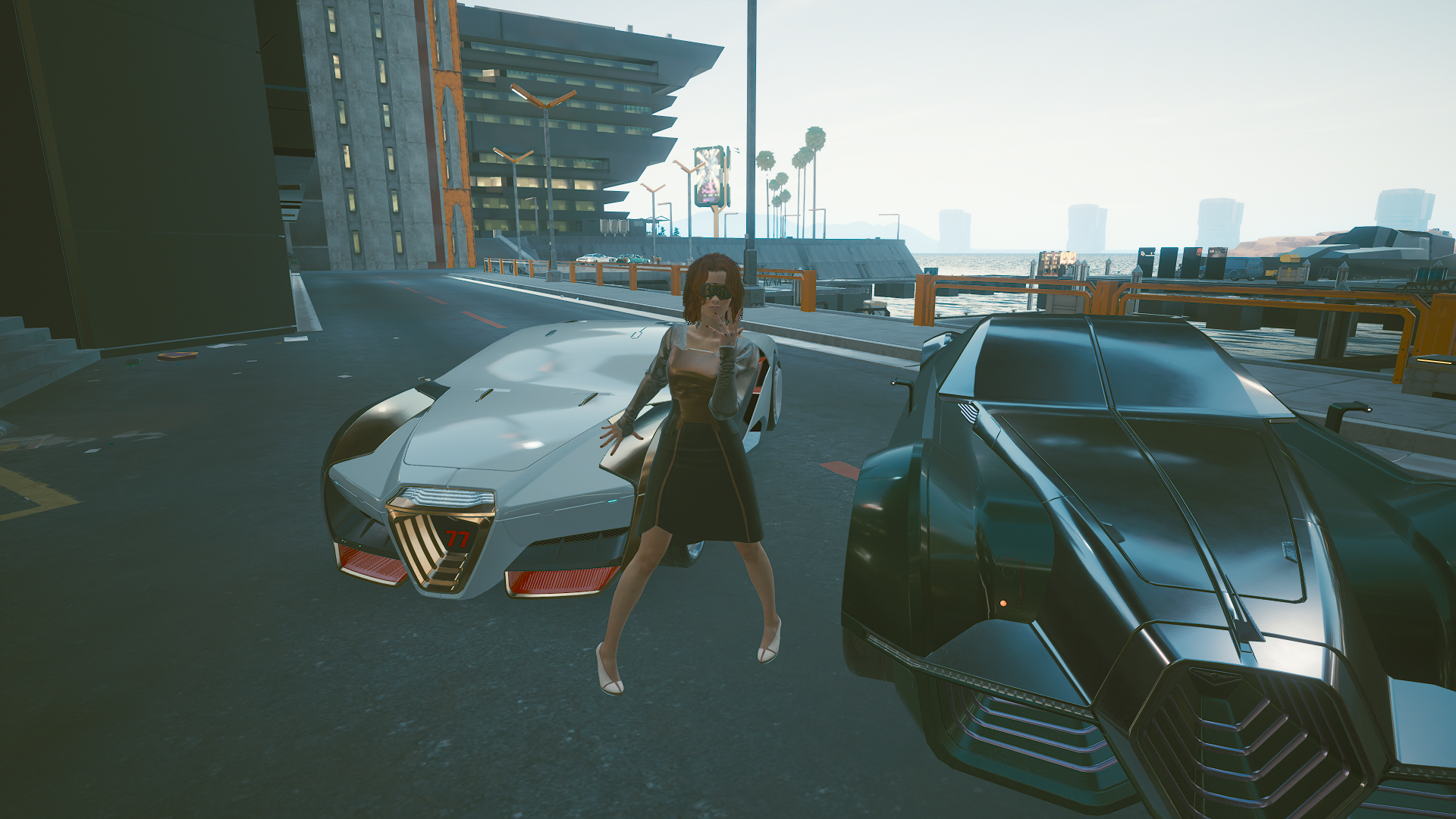 Ви позирует на фоне своей и угнанной машин.