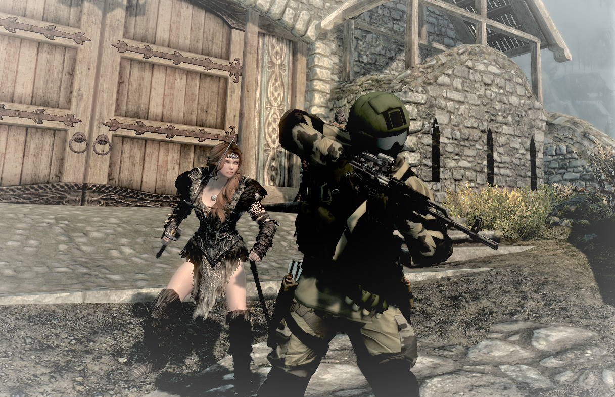 Даже удивительно, как рейнджер Ингвар неграмотно держит локоть(((. "Учиться военному делу настоящим образом!...Довакин хренов))"