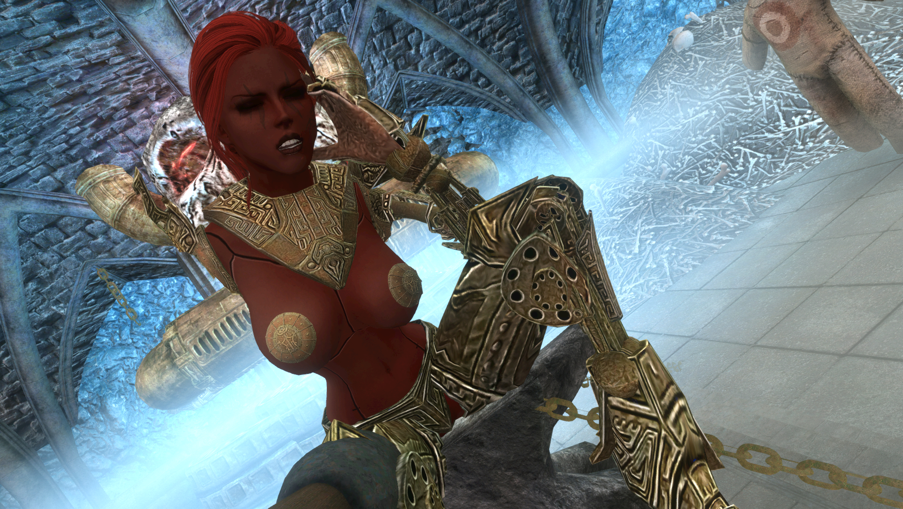 В кузне в тело восставшей, которая при воскрешении обратилась суккубом, были внедрены технологии с частичным восстановлением