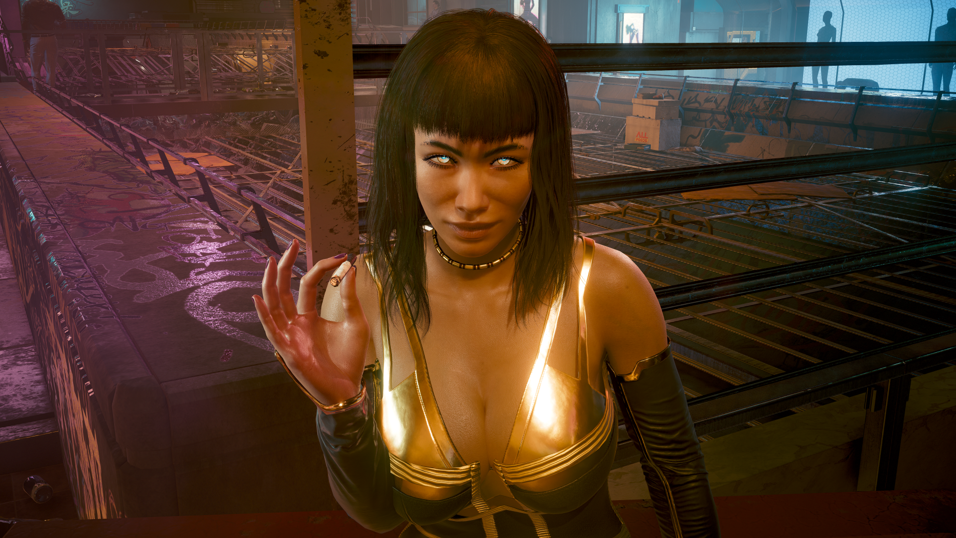 И обновлённая уличная с пышными формами джиг_джиг подтвердила сделку на "дешёвую продажную любовь" своими светящимися голубым светом глазами.
