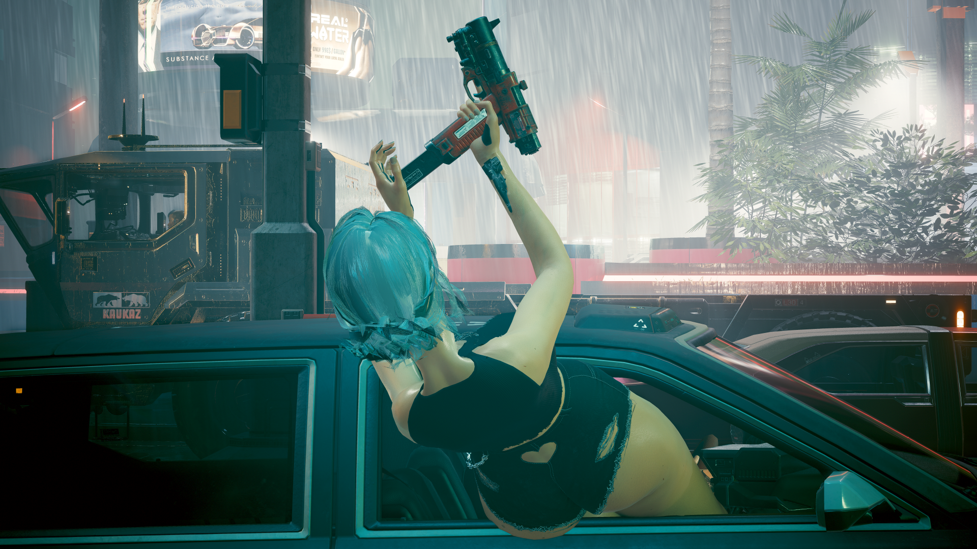 И девушка дальнобойшица на грузовике «Кавказ». В прологе - во время перестрелки с мусорщиками в преследующем их пикапе.