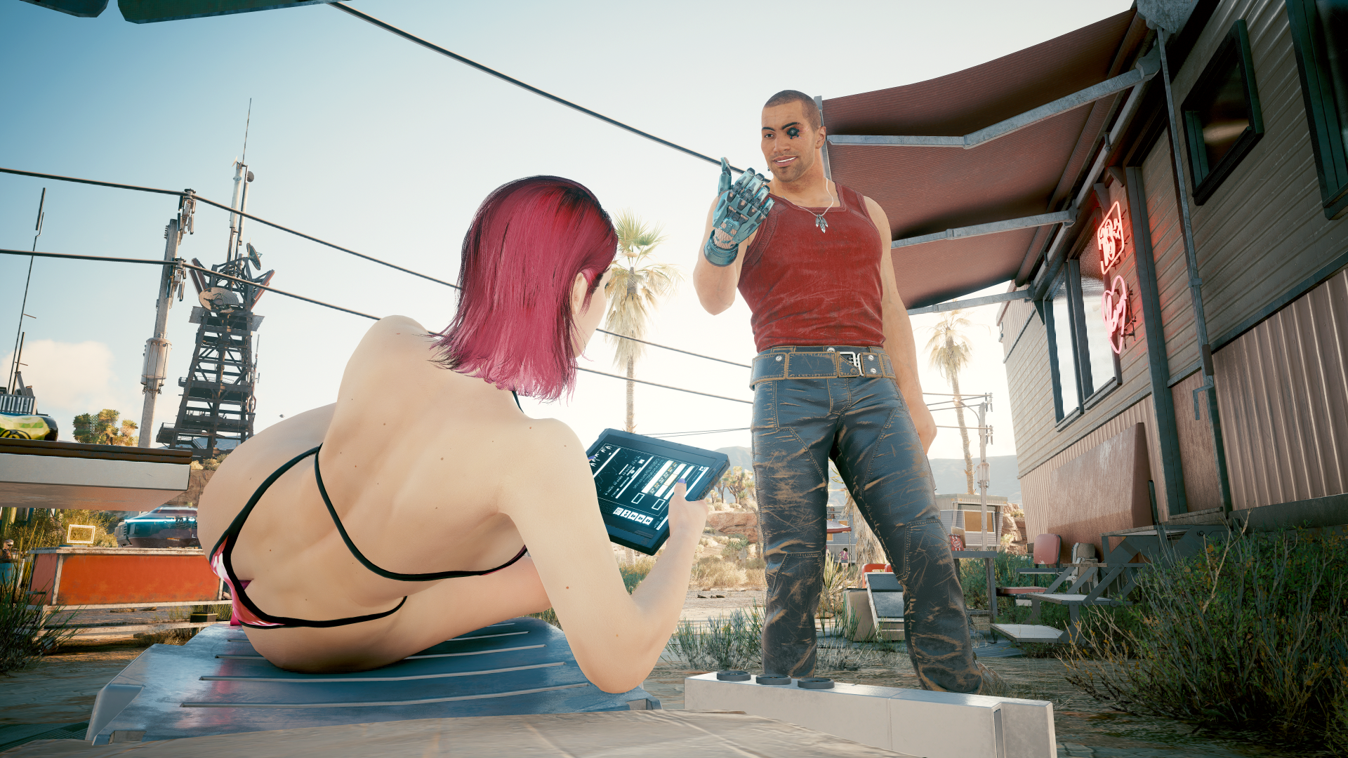 На импровизированную местную "качалку" в посёлке с автомастерской «Юкка». В прологе (до начало основного сюжета игры).
