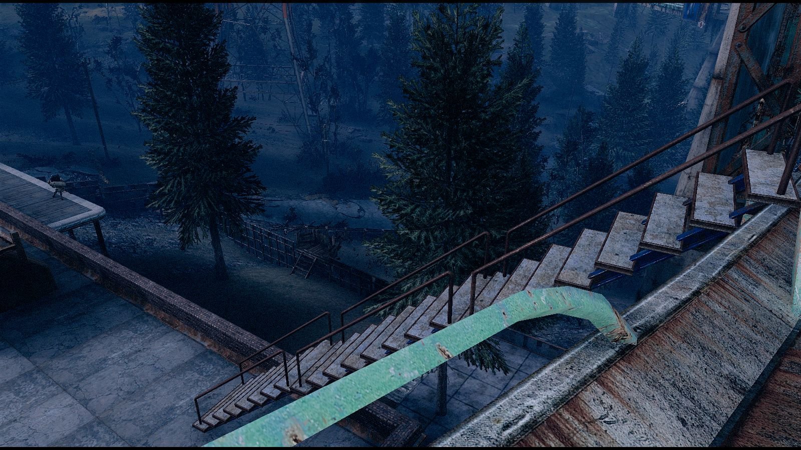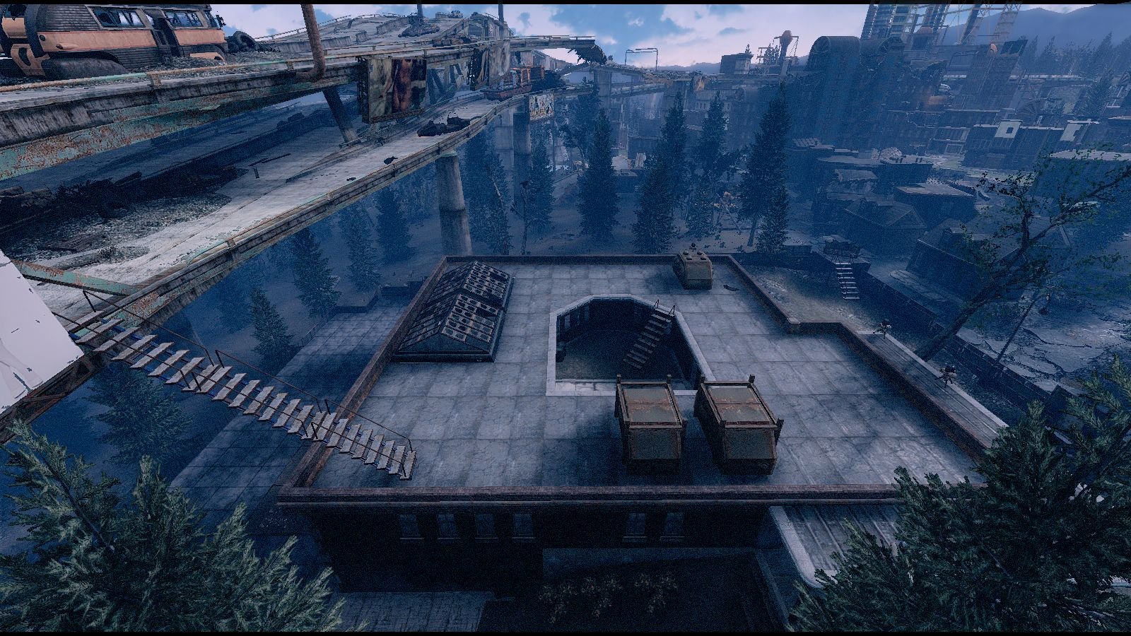 Большое не ванильное поселение. Можно занять часть моста наверху. Много места. Рядом с опасной дорогой, где нужна хорошая защита.